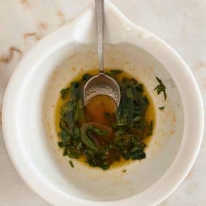 Numa taça junta todos os ingredientes do molho e mexe para emulsionar um pouco.